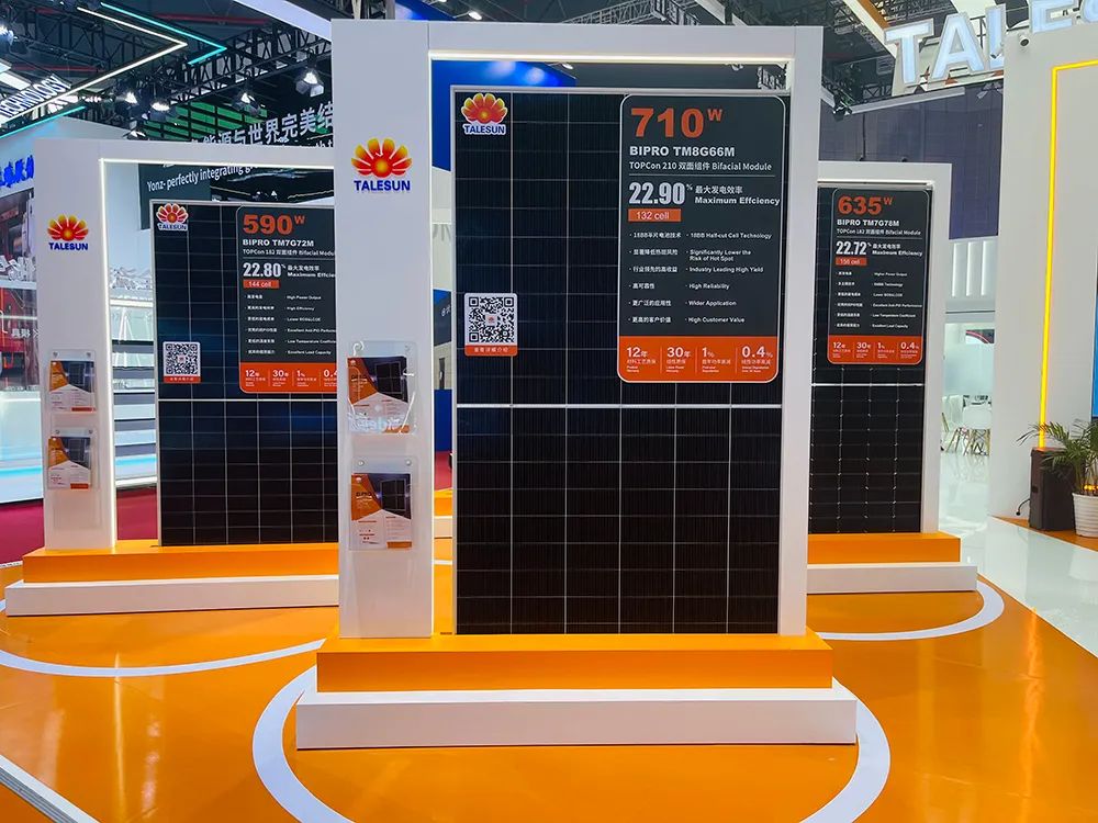 騰暉光伏自成立伊始,一直致力于推動(dòng)光伏技術(shù)的進(jìn)步和應(yīng)用。在本次SNEC展會(huì)上,騰暉光伏帶來的全系TOPCon組件不僅功率和效率出眾,而且產(chǎn)品線豐富,涵蓋了多種不同功率和尺寸的組件。這些組件不僅適用于大型地面電站,也適用于工商業(yè)和戶用光伏市場。其中,TM8G66M組件最高功率可達(dá)710W,轉(zhuǎn)換效率高達(dá)22.9%,達(dá)到業(yè)內(nèi)一線標(biāo)準(zhǔn)。此外,騰暉光伏還針對不同的應(yīng)用場景,提供了定制化的解決方案,以滿足客戶的多樣化需求。