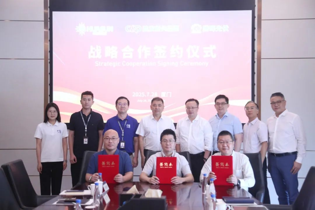 July 28, 2025 —?Xiamen C&D Emerging Energy Co., Ltd. (hereinafter referred to as “C&D Emerging Energy”), Suzhou Talesun Solar Technologies Co., Ltd. (hereinafter referred to as “Talesun Solar”) and Anhui Huasun Energy Co., Ltd. (hereinafter referred to as “Huasun Energy”) signed a tripartite strategic cooperation agreement at the headquarters of Xiamen C&D Group.?The core of this cooperation lies in introducing Huasun Energy’s advanced Heterojunction (HJT) technology, this “new quality productive forces”, aiming to significantly enhance Talesun Solar’s technological strength and product competitiveness, achieving key breakthroughs. Xu Jiana, Deputy General Manager of Xiamen C&D Co., Ltd. (hereinafter referred to as “C&D Co., Ltd.”) and Chairman of Zhongli Group Co., Ltd. (hereinafter referred to as “Zhongli Group”), Huang Chang, General Manager of C&D Emerging Energy and Chairman of Talesun Solar, and Liang Haibin, Vice President of Huasun Energy, signed the agreement on behalf of the three parties respectively. The signing was witnessed by leaders including Lin Mao, Chairman of C&D Co., Ltd., and Xu Xiaohua, Chairman of Huasun Energy.