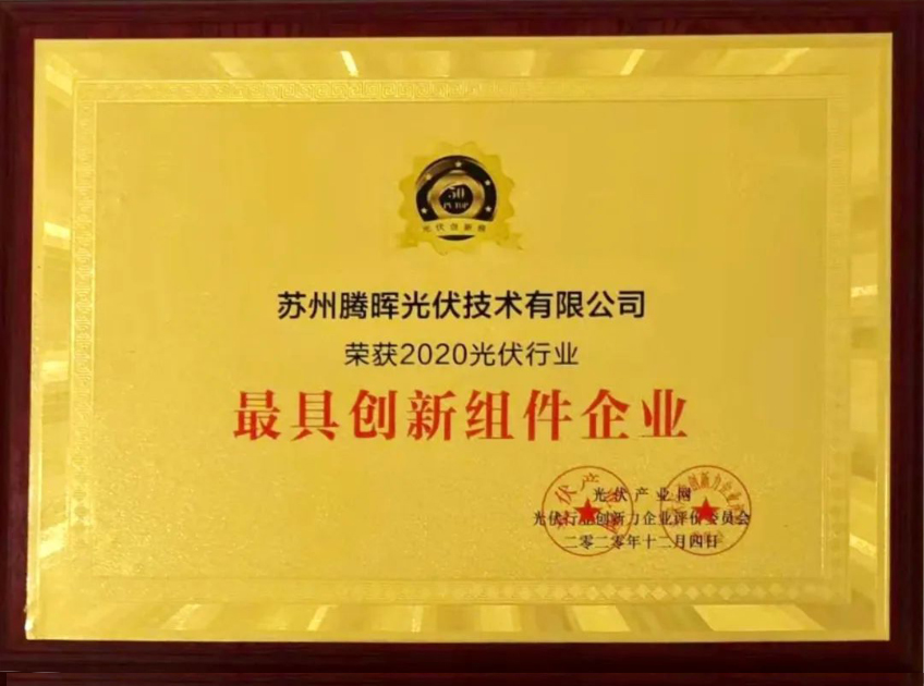 與此同時(shí),騰暉光伏在技術(shù)升級(jí)和團(tuán)隊(duì)建設(shè)等方面也取得了優(yōu)異的成績(jī)。截止目前,公司已完成近百項(xiàng)科研項(xiàng)目的開(kāi)發(fā)工作,承擔(dān)國(guó)家級(jí)科技項(xiàng)目2項(xiàng),省級(jí)項(xiàng)目4項(xiàng),完成13項(xiàng)江蘇省新技術(shù)新產(chǎn)品鑒定,其中12項(xiàng)產(chǎn)品技術(shù)水平達(dá)到國(guó)內(nèi)領(lǐng)先水平,1項(xiàng)成果達(dá)到國(guó)際先進(jìn)水平,18項(xiàng)新產(chǎn)品被認(rèn)定為“江蘇省高新技術(shù)產(chǎn)品”, 并且先后多次榮獲蘇州市科技進(jìn)步獎(jiǎng),并獲2019年度江蘇省科學(xué)技術(shù)獎(jiǎng)三等獎(jiǎng),連續(xù)榮獲中國(guó)專利獎(jiǎng)第二十屆優(yōu)秀獎(jiǎng)及第二十一屆優(yōu)秀獎(jiǎng)等。